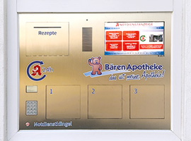 Nicht jeder schafft es während unserer Öffnungszeiten bestellte Medikamente abzuholen. Wer auch durch unsere Boten selten zuhause erreichbar ist, nutzt gern Abholautomaten als praktische Alternative. Er steht ab sofort bei der Bären-Apotheke Rottenburg auch außerhalb der Öffnungszeiten immer für Sie zur Verfügung. So halten wir die bezahlten Bestellungen für Kunden/innen bereit, die sich bei der Bestellung hierfür entschieden haben. Über einen Code, den wir Ihnen per E-Mail oder SMS zuschicken oder direkt vor Ort in der Apotheke aushändigen, können Sie diesen öffnen und Ihre Medikamente entnehmen. Wir zeigen Ihnen vor Ort gern, wie es funktioniert. Fragen Sie uns einfach. Der Abholautomat ist gut sichtbar in ein Fenster rechts neben dem Eingangsbereich bei den Kundenparkplätzen integriert.